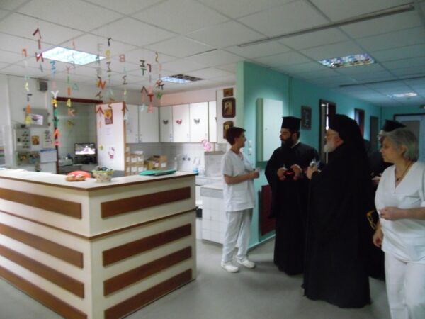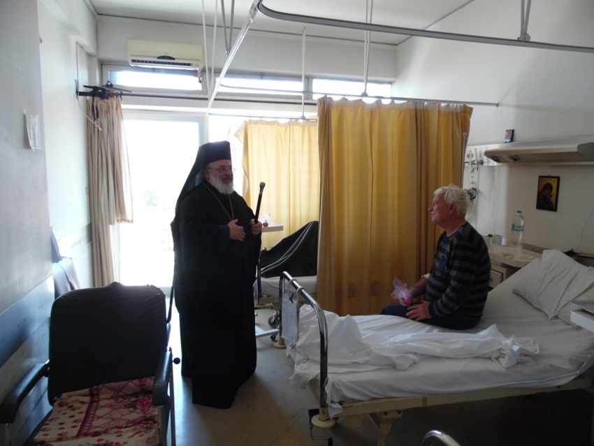 Αφού τόνισε ότι η διακονία σε ένα τέτοιο χώρο, που ο πόνος περισσεύει, απαιτεί αγάπη και φόβο Θεού, εξέφρασε για μια ακόμα φορά την απεριόριστη εκτίμησή του στην προσφορά και στην θυσιαστική διακονία του ιατρικού και νοσηλευτικού προσωπικού του Ιδρύματος και τα συγχαρητήριά του σε όλους τους εργαζόμενους σε αυτό. Επίσης ευχήθηκε ταχεία ανάρρωση στους νοσηλευομένους και υπομονή και δύναμη στους οικείους τους, για να συμπαρασταθούν στους ασθενείς τους, σαν άλλοι Κυρηναίοι.