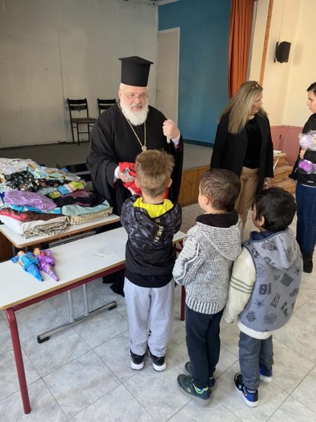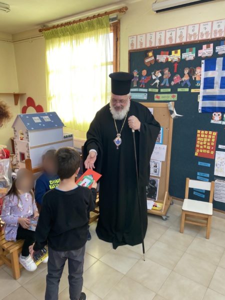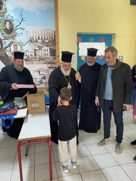 Ο Σεβασμιώτατος με την ευκαιρία αυτή μοίρασε σχολικά είδη στους μαθητές των Δημοτικών Σχολείων και παιχνίδια στα νήπια. Επίσης είχε τη δυνατότητα να επικοινωνήσει με τους εκπαιδευτικούς και τους μαθητές και να τους εκδηλώσει το αμέριστο ενδιαφέρον του για την πρόοδο των παιδιών και να ευχηθεί στους μεν εκπαιδευτικούς υπομονή και όρεξη για προσφορά στους δε μικρούς μαθητές φώτιση Θεού και επιτυχία.