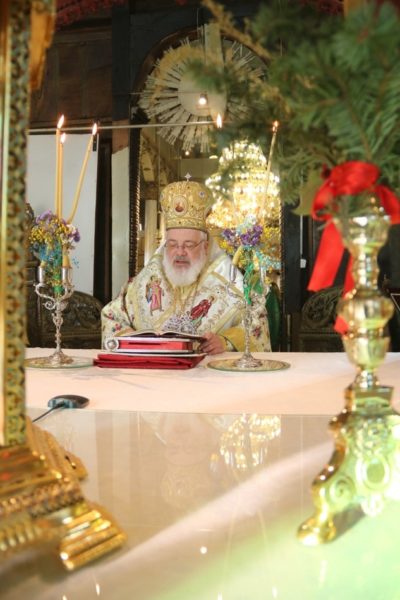 Ερμηνεύοντας το ευαγγελικό ανάγνωσμα ο Σεβασμιώτατος σημείωσε: «Ἡ σημερινή εὐαγγελική περικοπή, ἀναγιγνωσκομένη στίς ἀνατολές τοῦ Νέου Ἔτους, ἔχει μία ἐξαιρετική ἐπικαιρότητα. Ὁμιλεῖ γιά τόν ἐγκλωβισμό τοῦ ἀνθρώπου στήν περιοχή καί στό σκοτάδι τοῦ θανάτου, πού ὁ ἄνθρωπος σήμερα βιώνει περισσότερο ἀπό κάθε ἄλλη φορά καί μέ ἐξαιρετικά ἔντονο τρόπο…