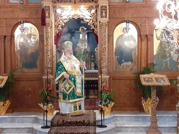 Στο κήρυγμά του ο Σεβασμιώτατος ανέφερε: «Μεγάλη Δεσποτική ἑορτή ἄγει σήμερα ἡ ἁγία μας Ἐκκλησία. Ὁ Μεγάλης Βουλῆς Ἄγγελος, ὁ Παλαιός τῶν ἡμερῶν, ὁ Παντοδύναμος τοῦ Σύμπαντος Δημιουργός, ὁ Κύριος κάθε δόξας, ὁ ἀποκεκρυμμένος καί ταυτόχρονα ἀποκεκαλυμμένος Θεός τῆς Παλαιᾶς καί τῆς Καινῆς Διαθήκης ἐπιβαίνει «ἐπί πώλου ὄνου», γιά νά εἰσέλθη στήν ἀγαπημένη Του πόλη, νά σφαγιασθῆ καί νά θριαμβεύση, νά σταυρωθῆ καί ν’ ἀναστηθῆ, νά δώση τέλος στήν κοσμοκρατορία τοῦ διαβόλου καί ἀρχή στή σωτηρία τοῦ ἀνθρώπου.