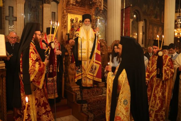 Το απόγευμα της αυτής ημέρας στον Ιερό Μητροπολιτικό Ναό Αγίων Θεοδώρων Νέας Ορεστιάδος στον Πανηγυρικό Εσπερινό χοροστάτησε και μίλησε ο φιλοξενούμενος Μητροπολίτης Αδριανουπόλεως κ. Αμφιλόχιος, συγχοροστατούντος του επιχώριου Μητροπολίτου κ. Δαμασκηνού.