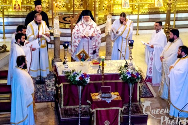 Ακολούθως, ιερουργούντος Σεβασμιωτάτου, ετελέσθη η αρχαιοπρεπής Θεία Λειτουργία του Αγίου Ιακώβου, κατά το τυπικό της Σιωνίτιδος Εκκλησίας. Ο Σεβασμιώτατος μίλησε επί του αγιογραφικού χωρίου της Καθολικής Επιστολής Ιακώβου «Πᾶσαν χαρὰν ἡγήσασθε, ἀδελφοί μου, ὅταν πειρασμοῖς περιπέσητε ποικίλοις, γινώσκοντες ὅτι τὸ δοκίμιον ὑμῶν τῆς πίστεως κατεργάζεται ὑπομονήν· ἡ δὲ ὑπομονὴ ἔργον τέλειον ἐχέτω, ἵνα ἦτε τέλειοι καὶ ὁλόκληροι, ἐν μηδενὶ λειπόμενοι» (Ιακ. α΄ 2-4).