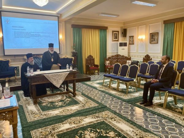 Στη συνέχεια, τον λόγο έλαβε ο Πανοσ. Αρχιμ. Θεολόγος Αλεξανδράκης, Αναπληρωτής Διευθυντής του Ι.Π.Ε., ο οποίος, αφού μετέφερε τις ευχές του Μακαριωτάτου, συνεχάρη τον Σεβασμιώτατο για τη δυνατότητα που προσφέρει στους κληρικούς του μέσω της διά βίου μάθησης και εκπαίδευσης, να επιμορφωθούν επί ποιμαντικών θεμάτων της ενοριακής ζωής και ευχαρίστησε τον Συντονιστή του Προγράμματος Πανοσ. Αρχιμ. Κύριλλο Κολτσίδη για την άριστη συνεργασία και τη βοήθειά στην οργάνωση του Προγράμματος, με τις ευλογίες του Σεβασμιωτάτου. Στη συνέχεια ο Αναπληρωτής Διευθυντής του Ι.Π.Ε. μίλησε για το αντικείμενο του Προγράμματος «Λατρεία και πολιτισμός στην σύγχρονη ζωή της Εκκλησίας», που απευθύνεται σε κληρικούς, και ειδικότερα αναφέρθηκε στα βασικά στοιχεία θεολογίας της λατρείας. Το Πρόγραμμα θα ολοκληρωθεί σε 56 διδακτικές ώρες με 14 εκπαιδευτικές συναντήσεις.