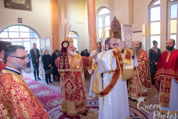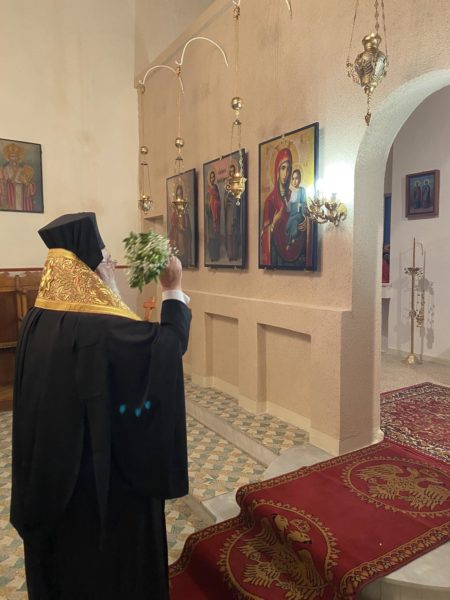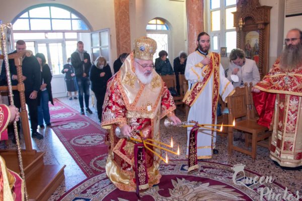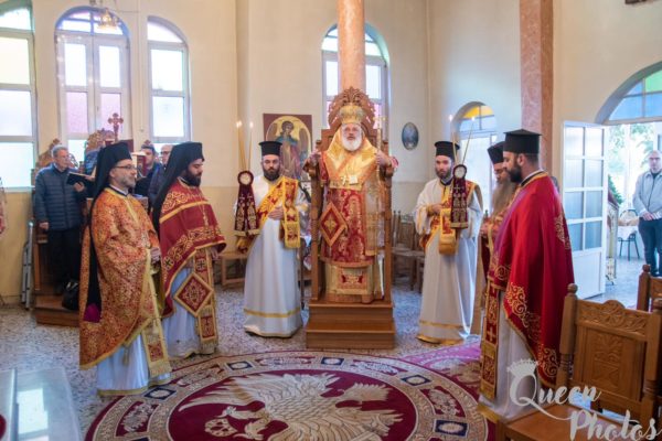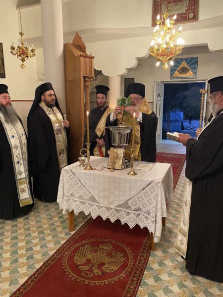 Το απόγευμα ο Σεβασμιώτατος, επί τη αποπερατώσει, των ανακαινιστικών έργων του Ιερού Ενοριακού Ναού Αγίων Αναργύρων Κριού, τέλεσε τον Αγιασμό και στη συνέχεια προέστη του Πανηγυρικού Εσπερινού.