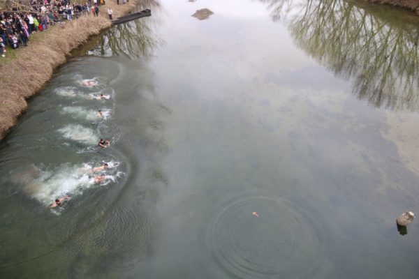 Μετά το πέρας του Μεγάλου Αγιασμού στον Καθεδρικό Ναό της πόλεως σχηματίστηκε πομπή προς τον Ερυθροπόταμο, όπου παρουσία των αρχών και πλήθους κόσμου εγένετο η κατάδυση του Τιμίου Σταυρού. Στους τολμηρούς κολυμβητές, που έπεσαν στα παγωμένα νερά του Ερυθροπόταμου για να ανασύρουν τον σταυρό, ο Σεβασμιώτατος προσέφερε επιστήθιο Σταυρό, χάριν αγιασμού και ευλογίας, και τους ευχήθηκε φώτιση και ευλογία Θεού στη ζωή τους.