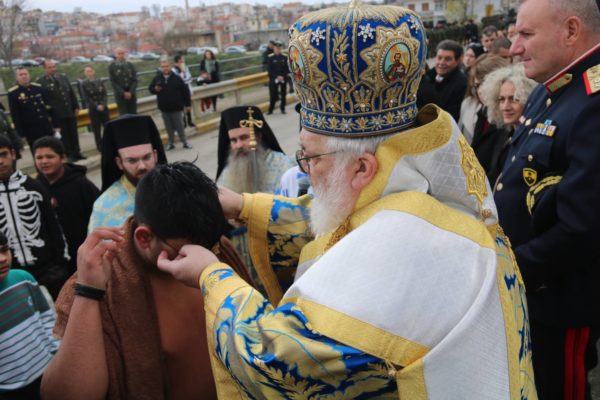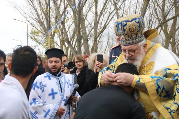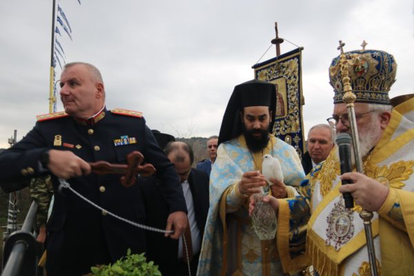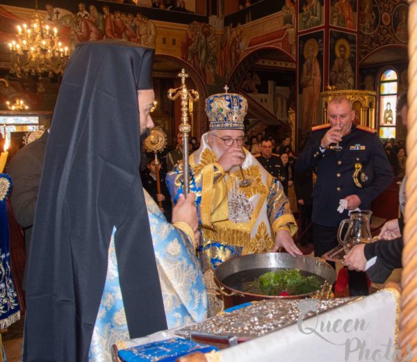 Μετά το πέρας του Μεγάλου Αγιασμού στον Καθεδρικό Ναό της πόλεως σχηματίστηκε πομπή προς τον Ερυθροπόταμο, όπου παρουσία των αρχών και πλήθους κόσμου εγένετο η κατάδυση του Τιμίου Σταυρού. Στους τολμηρούς κολυμβητές, που έπεσαν στα παγωμένα νερά του Ερυθροπόταμου για να ανασύρουν τον σταυρό, ο Σεβασμιώτατος προσέφερε επιστήθιο Σταυρό, χάριν αγιασμού και ευλογίας, και τους ευχήθηκε φώτιση και ευλογία Θεού στη ζωή τους.