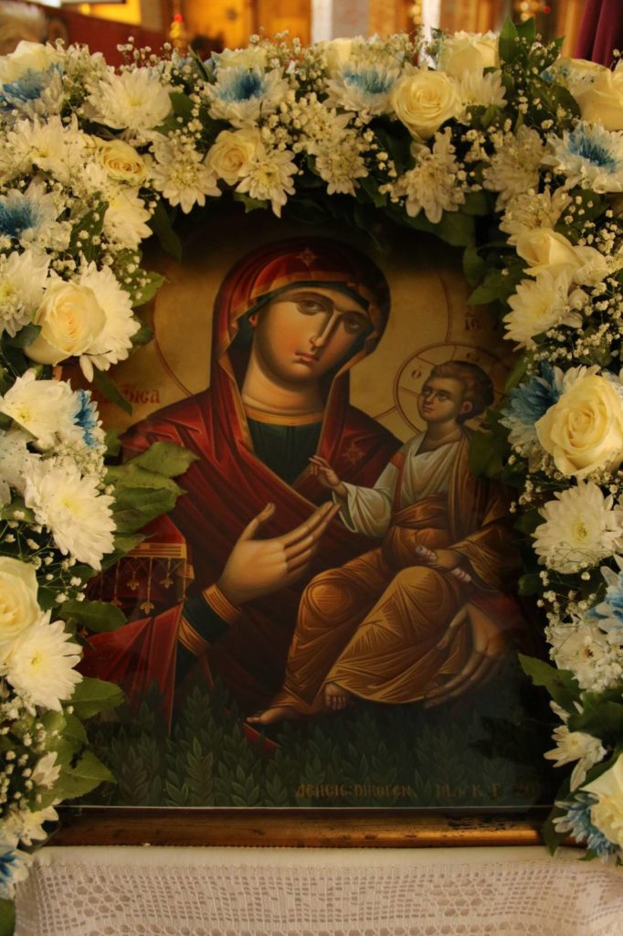 Αφ’ εσπέρας, ο Σεβασμιώτατος στον Ιερό Ενοριακό Ναό Προφήτου Ηλιού Ορεστιάδος, υπεδέχθη την, φιλοτίμῳ προνοίᾳ του Προϊσταμένου του Ιερού Ναού Αρχιμ. Γρηγορίου Λιόλιου, ιστορηθείσα εικόνα της Πρωτομάρτυρος και Ισαποστόλου Αγίας Θέκλας, προκειμένου να καθιερωθεί στο εξής να τιμάται η μνήμη της Αγίας στην ενορία αυτή και να εμπνέει ιδιαιτέρως της ευσεβείς χριστιανές μας στην υπακοή του Χριστού και στο μαρτύριο. Μετά την υποδοχή ο Σεβασμιώτατος προέστη του Πανηγυρικού Εσπερινού, ευλόγησε τους άρτους και μίλησε κατάλληλα.