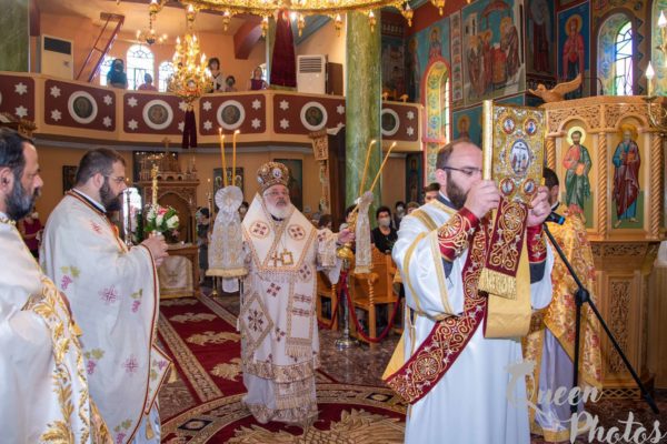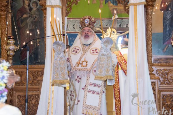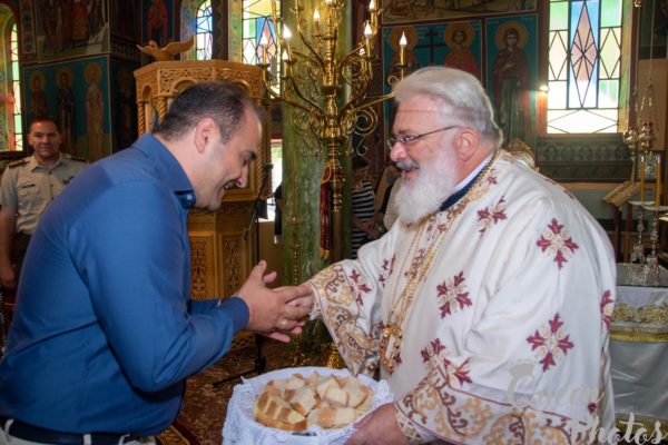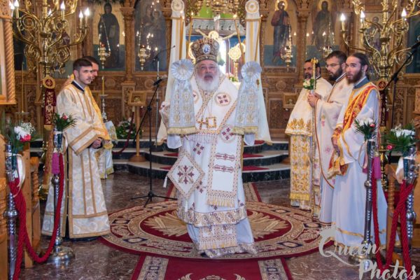 Και συνέχισε ο Σεβασμιώτατος: «Η Αγία Παρασκευή ως χριστιανή καταθέτει την μαρτυρία της συνειδήσεώς της. Ο Σταυρός που κρατάει στο χέρι συνδέεται με την δόξα του Χριστού, της δίδει τη δύναμη να ομολογεί τον Θεό και να καταθέτει την μαρτυρία της συνειδήσεώς της. Αυτή η πίστη κι αυτή η συνείδηση εκφράζεται στην δυναμική του ονόματος χριστιανός. Και το όνομα χριστιανός δεν είναι ένα ηθικό πλεονέκτημα έναντι των άλλων. Το όνομα χριστιανός είναι ευθύνη, ζωή, ευλογία, φως, ομολογία. Ο χριστιανός δεν είναι οπαδός κάποιας θρησκείας, είναι μέλος της Εκκλησίας. Βαπτίζεται στο όνομα του Τριαδικού Θεού και χρίεται με τα χαρίσματα του Παρακλήτου. Γίνεται κοινωνός του Θανάτου, του Σταυρού και της Αναστάσεως του Χριστού μας, λαμβάνοντας το όνομα του Χριστού και βαστάζοντας Τον ή φορώντας Τον. Έτσι ο χριστιανός αισθάνεται ευλογημένος και φωτεινός στην ευθύνη του. Είναι ο άνθρωπος που καλλιεργεί την αλήθεια, το δίκαιο, την ειρήνη, την αγάπη, την φιλαδελφία. Ενώπιον της σκληρυνθείσης εξουσίας του κόσμου τούτου δίδει καθημερινά την μαρτυρία της συνειδήσεως του και φέρει τα στίγματα του Χριστού· μαρτυρεί και ομολογεί καθημερινά…