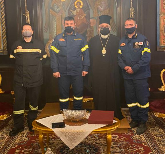 Ο Σεβασμιώτατος με ιδιαίτερη χαρά ευχήθηκε εις αμφότερους επιτυχία στα νέα τους καθήκοντα και εξήρε την πολύτιμη προσφορά της Πυροσβεστικής Υπηρεσίας στον τόπο για την αντιμετώπιση των ποικίλων θεομηνιών και εκδήλωσε για μια ακόμη φορά την ολόθυμη πρόθεση της τοπικής Εκκλησίας να είναι συμπαραστάτις και αρωγός στο υπεύθυνο λειτούργημα που με αυτοθυσία διακονούν.