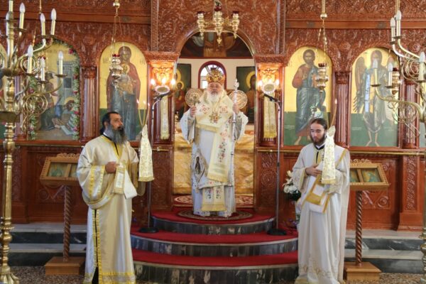 Ο Σεβασμιώτατος, θεραπεύων τις απαιτήσεις του ιερού άμβωνος, ωμίλησε περί του τιμώμενου αγίου ειπών, μεταξύ άλλων· “Ο Τίμιος Πρόδρομος, ως ο τελευταίος των Προφητών της Παλαιάς Διαθήκης και ως ο πρώτος των Αγίων και Δικαίων της Καινής, αναφέρεται με πολλά ονόματα στην Αγία Γραφή και στην Παράδοση της Εκκλησίας μας. Στην Παλαιά Διαθήκη, προφητικά ονομάζεται «φωνή βοώντος εν τη ερήμω». Από αυτήν την προετοιμασία της πορείας του Κυρίου ονομάσθηκε «Πρόδρομος», «η φωνή του Λόγου», «ο λύχνος του Φωτός», «ο Εωσφόρος (δηλαδή ο Αυγερινός) του Ηλίου», «ο φίλος του Νυμφίου» κλπ… Οι πιστοί μας τιμούν τον Τίμιο Πρόδρομο με πολλή ευλάβεια, κάνοντας ακολουθίες, αγρυπνίες, λειτουργίες, πανηγύρια στην μνήμη του, γιατί είναι κοντά στο Χριστό και την Παναγία και μεσιτεύει για όλους όσους με μετάνοια προσέρχονται και ζητούν την βοήθειά του. Και όσοι ακούουν και διαβάζουν το βίο του, διδάσκονται πως πρέπει να παραμένουν αγνοί και πεντακάθαροι, όπως εκείνος που αξιώθηκε να αγγίξει με τα αγιασμένα χέρια του «την κορυφή του Δεσπότου».