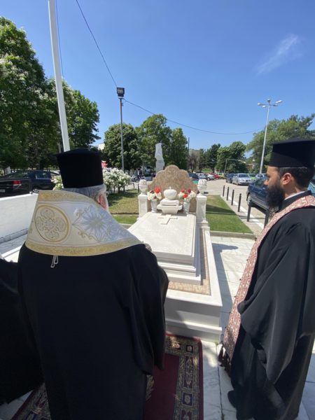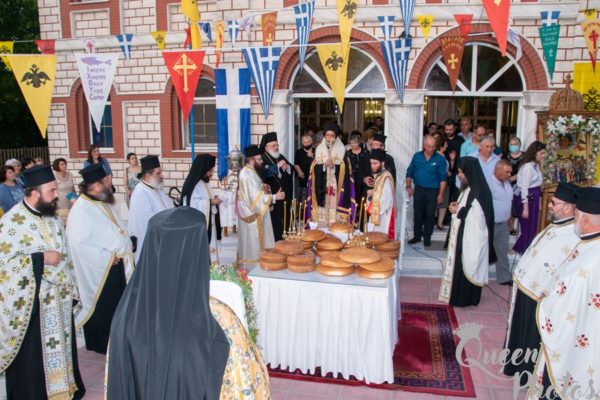 Με ιδιαίτερη χαρά και συγκίνηση υποδέχθηκε ο επιχώριος Μητροπολίτης και το εκκλησίασμα τον εκ Θουρίου Έβρου καταγόμενο Αρχιερέα, ο οποίος προέστη της ακολουθίας του Πανηγυρικού Εσπερινού και εν συνεχεία ευλόγησε τους άρτους.