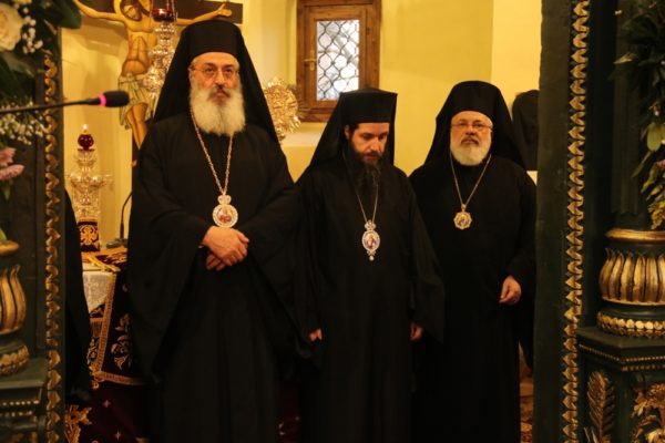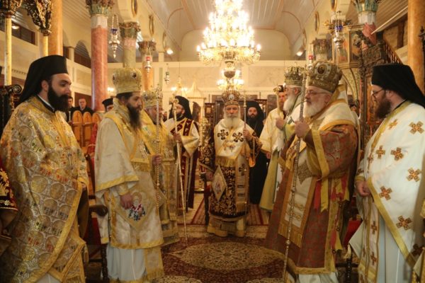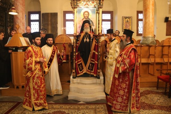 Της πολυαρχιερατικής Θείας Λειτουργίας προέστη ο Σεβ. Μητροπολίτης Ύδρας, Σπετσών και Αιγίνης κ. Εφραίμ, ο οποίος και μίλησε επίκαιρα, συλλειτουργούντων των Σεβ. Μητροπολιτών Αλεξανδρουπόλεως, Τραϊανουπόλεως και Σαμοθράκης κ. Ανθίμου, Στάρας Ζαγόρας κ. Κυπριανού, Σισανίου και Σιατίστης κ. Αθανασίου και του επιχωρίου Μητροπολίτου.