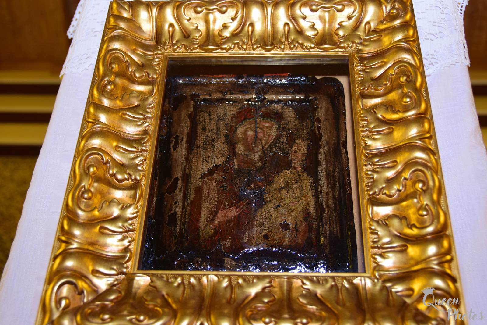 Ο Σεβασμιώτατος με την ευκαιρία αυτή εκόμισε και παρέδωσε στον Ιερό Ναό παλαιά εικόνα της Παναγίας, πρόσφατα συντηρηθείσα, μέσα σε περίτεχνη προθήκη, και πρότεινε όπως του λοιπού ονομάζεται «Παναγία η Παλιουριώτισσα» και να τιμάται την αυτήν ημέρα.