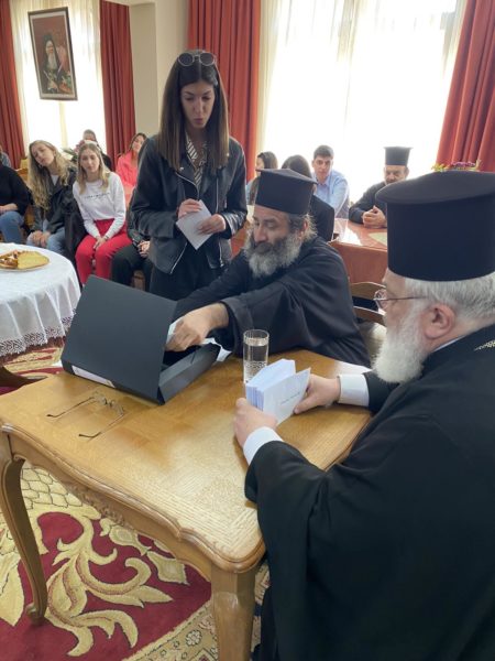 Ο Σεβασμιώτατος είχε την ευκαιρία να επικοινωνήσει με τους νέους και τις νέες της επαρχίας μας, που σπουδάζουν στα Ανώτατα Εκπαιδευτικά Ιδρύματα της χώρας, και να τους επιδώσει την υποτροφία του δευτέρου εξαμήνου της τρέχουσας ακαδημαϊκής περιόδου 2022 – 2023.