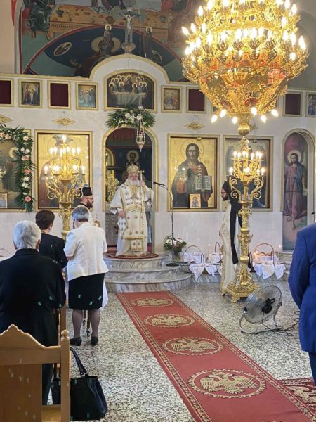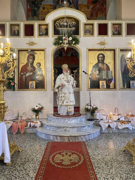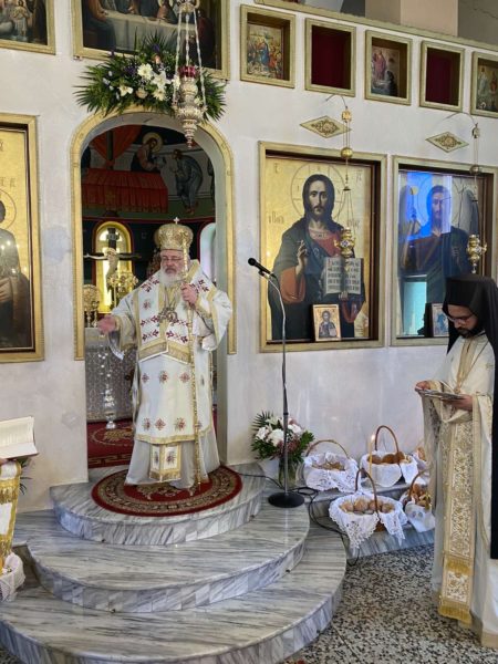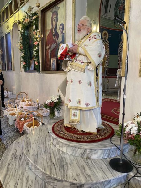 Ο Σεβασμιώτατος είχε την ευκαιρία να επικοινωνήσει με τους λιγοστούς κατοίκους του οικισμού και να τους μιλήσει για την ανάσταση των νεκρών και την αιώνια ζωή, που επαγγέλλεται ο Χριστός για τούς δικαίους και εναρέτους. Επίσης τους μίλησε για την ευγνωμοσύνη που οφείλουμε προς τους προαπελθόντες πατέρες και αδελφούς γιατί αυτοί μας χάρισαν τη ζωή – το ζήν, την δυνατότητα να απολαμβάνουμε τον κόπο και τον μόχθο τους – το ευ ζήν, και την ευλογία της εις Χριστόν Πίστεως, η οποία μας προσφέρει την προσδοκία της αναστάσεως και της αιώνιας ζωής -το αεί ζην.