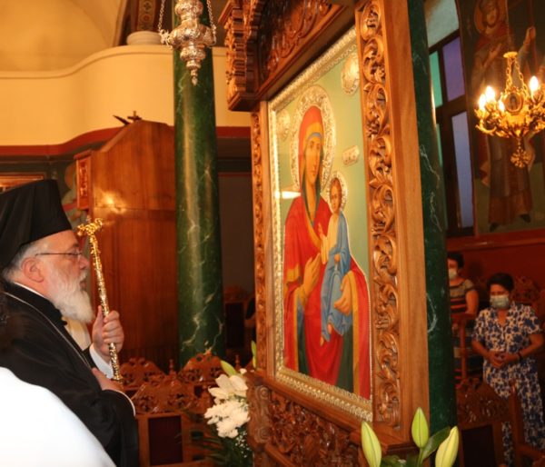 Την προηγουμένη, Σάββατο 13 του μηνός Αυγούστου, στον Ιερό Ενοριακό Ναό Κοιμήσεως της Θεοτόκου Σάκκου Ορεστιάδος ο Σεβασμιώτατος χοροστάτησε στον Εσπερινό της Κυριακής και εν συνεχεία έψαλε την Παράκληση ενώπιον της θαυματουργού εικόνας της Παναγίας της Αρβανίτισσας, η οποία ως πολύτιμος θησαυρός φυλάσσεται στον Ναό αυτό.