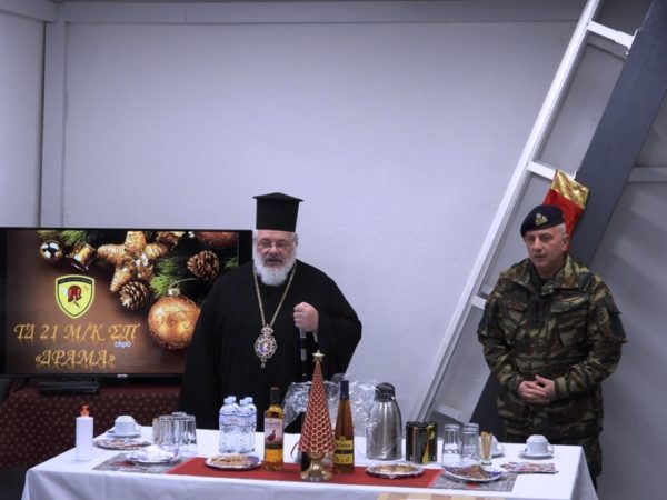 Ο Σεβασμιώτατος επισκεπτόμενος παραμεθόριες μονάδες μετέφερε στο ένστολο προσωπικό τους τις ευχές του Μακαριωτάτου Αρχιεπισκόπου Αθηνών και πάσης Ελλάδος κ.κ. Ιερωνύμου και τις προσωπικές του για υγεία προσωπική, οικογενειακή και επαγγελματική ευτυχία, εξαίροντας την αφοσίωσή τους στο καθήκον και την αποστολή τους.