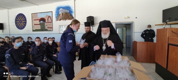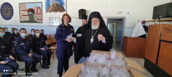 Κόκκινα πασχαλινά αυγά μαζί με τις ευχές του μοίρασε ο Σεβασμιώτατος Μητροπολίτης Διδυμοτείχου, Ορεστιάδος και Σουφλίου κ. Δαμασκηνός στους σπουδαστές της Σχολής Δοκιμών Αστυφυλάκων Διδυμοτείχου την Πέμπτη της Διακαινησίμου, 28 Απριλίου, παρουσία της Διοικητού της Σχολής Αστυνόμου Α΄ Αναστασίας Πουρναρά και του εκπαιδευτικού προσωπικού της.