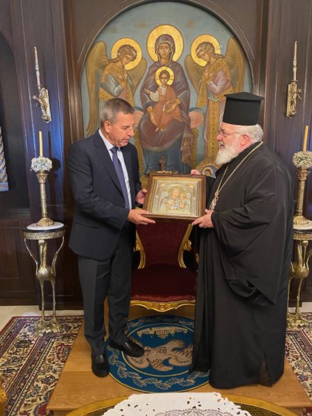 Σε ανάμνηση της επισκέψεως του Υπουργού, ο οποίος προ ετών ετιμήθη ως Δημότης Διδυμοτείχου, ο Σεβασμιώτατος προσέφερε εικόνα της Παναγίας της Βηθλεεμίτισσας ευχηθείς όπως το Άστρο της Βηθλεέμ οδηγεί και φωτίζει την ζωή του και την ευθυνοφόρο διακονία του, διά μεσιτείας της Υπερμάχου Στρατηγού. Στον Αρχηγό της ΕΛ.ΑΣ., επισκεπτόμενο για πρώτη φορά το Διδυμότειχο, ο Σεβασμιώτατος προσέφερε εικόνα του εκ Διδυμοτείχου καταγομένου Αγίου Ιωάννου Βατατζή, του ελεήμονος Βασιλέως.
