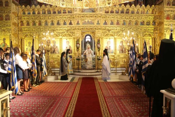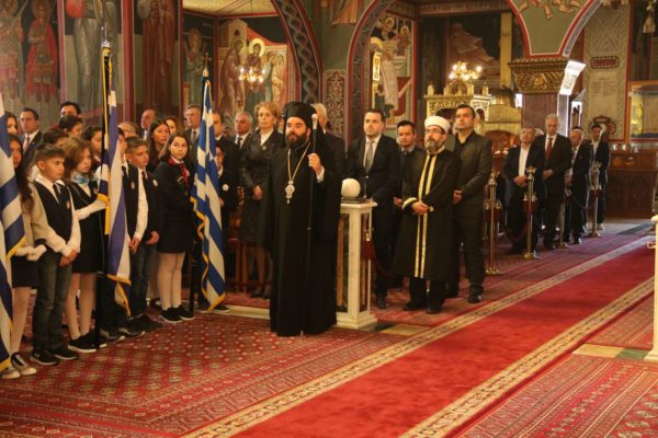 Στον Ιερό Καθεδρικό Ναό Παναγίας Ελευθερωτρίας στο Διδυμότειχο ιερούργησε ο οικείος Μητροπολίτης Διδυμοτείχου, Ορεστιάδος και Σουφλίου κ. Δαμασκηνός, ο οποίος στη συνέχεια προέστη της καθιερωμένης Δοξολογίας.