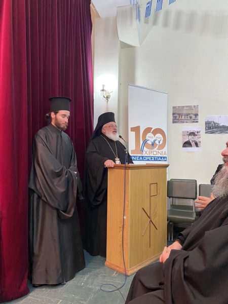Το απόγευμα της ιδίας ημέρας ο Σεβασμιώτατος παρακολούθησε επίκαιρη εορταστική εκδήλωση της «Χριστιανικής Εστίας Ορεστιάδος», που ετοίμασαν τα στελέχη των Νεανικών Κατηχητικών Συνάξεων με πολύ μεράκι. Μετά το πέρας της εκδήλωσης ο Σεβασμιώτατος συνεχάρη την εκπαιδευτικό Δεσποινίδα Μελπομένη Παπάζογλου, που είχε την έμπνευση της παραστάσεως, και ευχαρίστησε όλους τους συντελεστές της. Ιδιαιτέρως εξέφρασε το θαυμασμό του για τους νέους που με ενθουσιασμό και αυθορμητισμό απέδωσαν τους ρόλους τους. Η όλη εκδήλωση έκλεισε με τον εθνικό ύμνο.