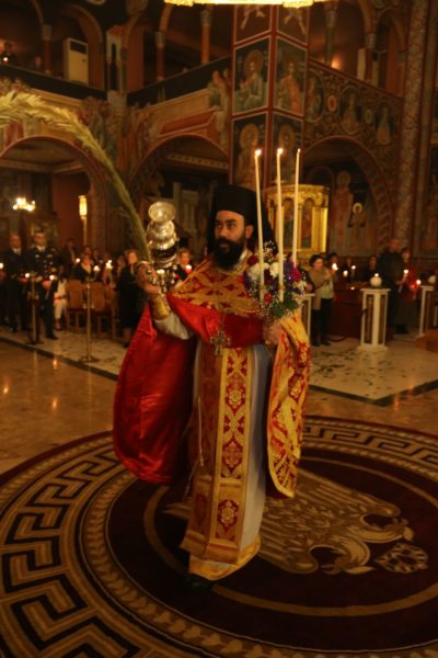 «Μέ πίστη καί ὑπομονή κατά τή διαρρεύσασα Ἁγία καί Μεγάλη Ἑβδομάδα ἐγενόμεθα αὐτόπται καί αὐτήκοοι μάρτυρες τοῦ Θείου Πάθους. Κρατῶντας τά βαΐα τῶν φοινίκων ἀκολουθήσαμε τόν Χριστό στα Ἱροσόλυμα· μέ συνοχή καρδίας Τόν εἲδαμε γονυπετῆ προσευχόμενο στόν Κήπο τῆς Γεθσημανῆ καί στή συνέχεια μέ ἕνα ὑποκριτικό φίλημα νά παραδίδεται ἀπό τόν μαθητή ὡς ληστής, ἀγόμενος ἀπό κριτήριο σέ κριτήριο· περιδεεῖς ἀτενίσαμε τό Θεῖο Του πρόσωπο περιβεβλημένο μέ τόν ἀκάνθινο στέφανο καί παρέστημεν στίς μαστιγώσεις, στούς κολαφισμούς καί τούς ἐμπτυσμούς, πού ὑπέμεινε ὁ Δίκαιος γιά ἐμᾶς· δοκιμασθήκαμε καθορῶντες τόν Λυτρωτή νά Σταυρώνεται ἀπό ἀνόμους καί νά παραδίδη τό Πνεύμα Του ἐπί τοῦ Σταυροῦ· μαζί μέ τόν Ιωσήφ καί τόν Νικόδημο συντετριμμένοι ἀποθέσαμε τό ἄχραντο Σῶμα τοῦ Διδασκάλου στόν Τάφο καί μέ τίς μυροφόρες θρηνήσαμε μέ ἄμετρη ὁδύνη. Ἀλλά ἰδοῦ σήμερα ἡ πολυπόθητη ἑορτή ἔφθασε! Ὁ Χριστός ἀνέστη! Τό ἀνέσπερο καί ζωηφόρο φῶς “τῆς μιᾶς τῶν Σαββάτων“ καταυγάζει ὅλες τίς σκοτεινές γωνιές τῆς ἀνθρωπότητας ἀλλά καί κάθε ἀνθρώπινης ψυχῆς! Τίποτε δέν μένει ἔξω ἀπό τήν Θεία καί ὑπερκόσμια ἀκτινοβολία. Τίποτε δέν παραμένει ὑπό τήν ἐξουσία τοῦ θανάτου. Ἀπελπισία πλέον δέν χωρεῖ στά ἀνθρώπινα, ἀδιέξοδα δέν ὑπάρχουν πλέον στά ἐπίγεια. Ἡ ζωή ξαναβρίσκει τό πρίν ἀπό τήν πτώση νόημα καί ὁ θάνατος γίνεται γέφυρα πρός τή ζωή! Γνωρίζουμε πλέον πώς ὁ Ἁδης δέν ἀποτελει τή μοίρα τοῦ ἀνθρώπου…», τόνισε ο Σεβασμιώτατος απευθυνόμενος στον ιερό κλήρο και τον ευσεβή λαό της ακριτικής επαρχίας του.