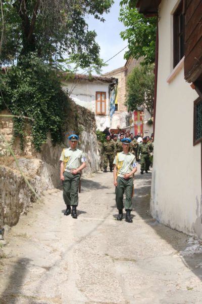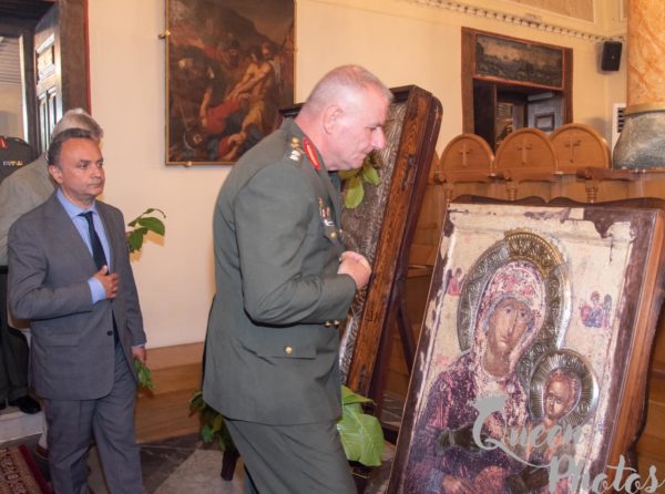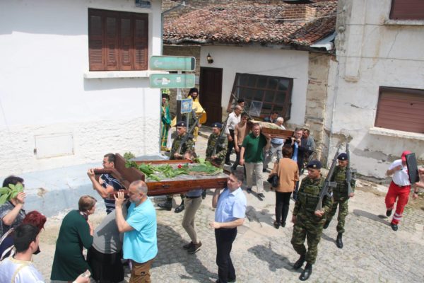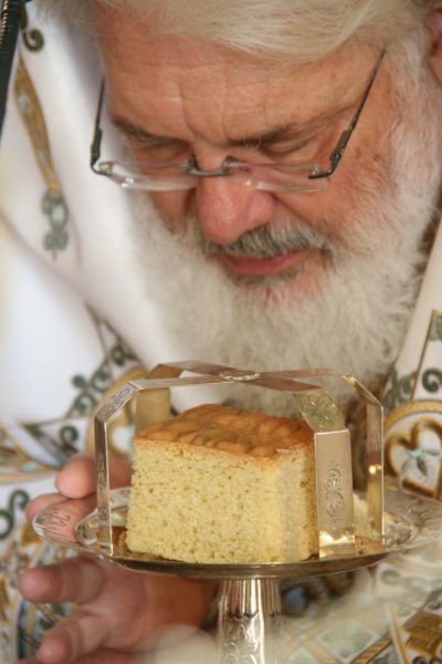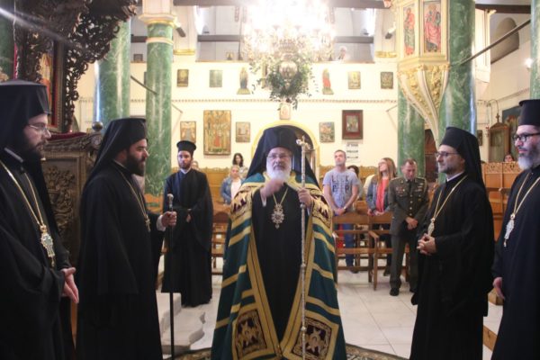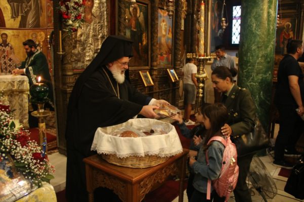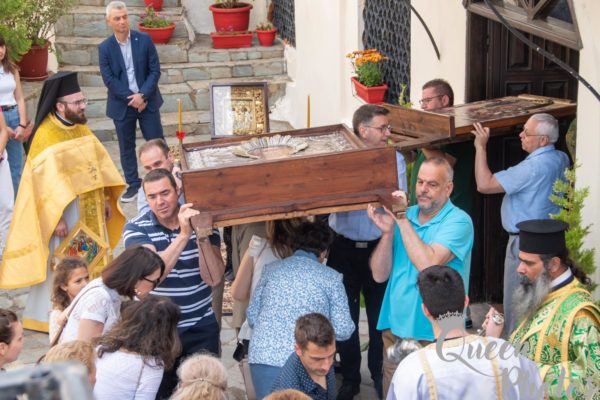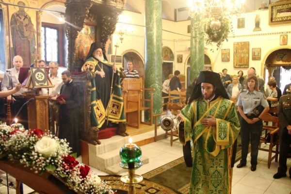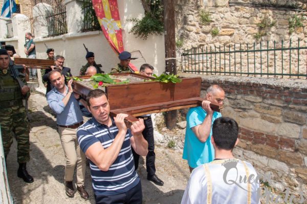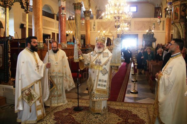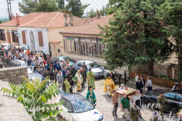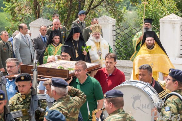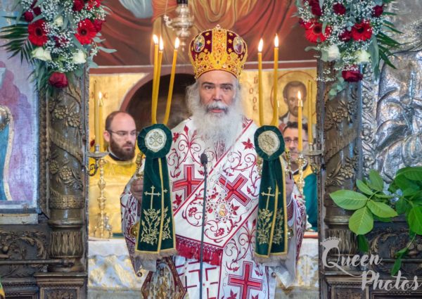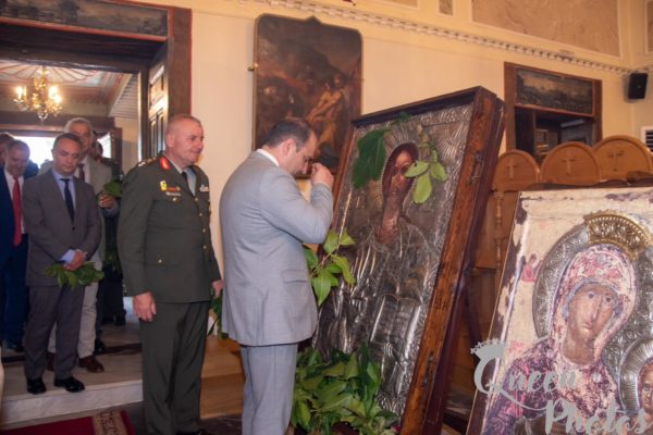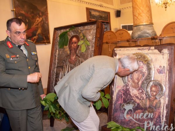Ακολούθησε η λιτάνευση των ιερών εικόνων, κατά το έθος, από τον Ιερό Ναό του Σωτήρος Χριστού στον Ιερό Μητροπολιτικό Ναό του Αγίου Αθανασίου, ενώ οι πιστοί κρατώντας καρυδόφυλλα στα χέρια, κατά το έθιμο, με περισσή ευλάβεια «πέρασαν κάτω από τις εικόνες», χάριν αγιασμού και ευλογίας.
