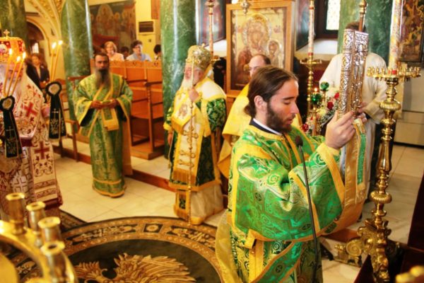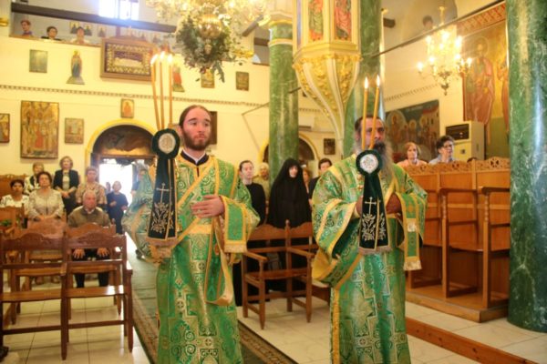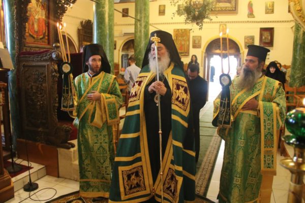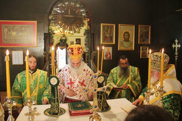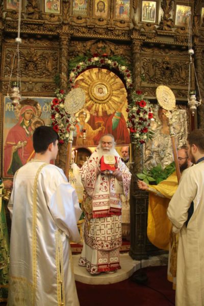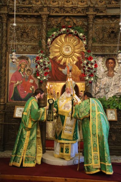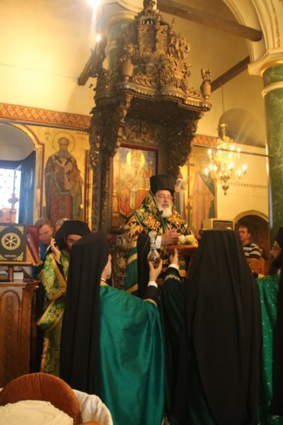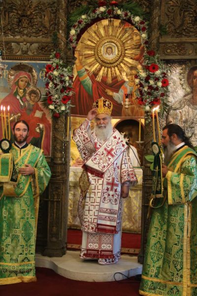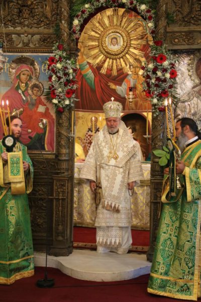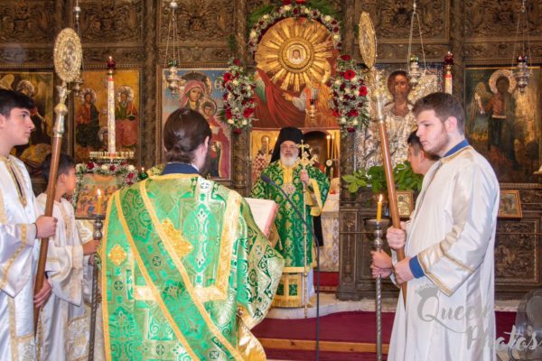 Το πρωί της Κυριακής της Πεντηκοστής, της Θείας Λειτουργίας προέστη ο Σεβασμιώτατος Μητροπολίτης Αδριανουπόλεως κ. Αμφιλόχιος, Ιεράρχης του Οικουμενικού Θρόνου, συλλειτουργούντων του Σεβασμιωτάτου Μητροπολίτου Στρωμνίτσης κ. Ναούμ, Ιεράρχου της Αρχιεπισκοπής Αχρίδος, και του επιχώριου Μητροπολίτου κ. Δαμασκηνού, ο οποίος στη συνέχεια προέστη του Εσπερινού της Γονυκλισίας.