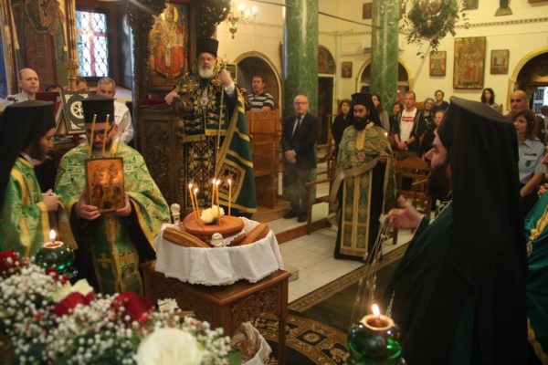Την επομένη, το πρωί της Δευτέρας του Αγίου Πνεύματος, της Ευχαριστιακής Συνάξεως στον Ιερό Μητροπολιτικό Ναό Αγίου Αθανασίου προέστη ο οικείος Μητροπολίτης και στη συνέχεια λιτανεύθηκαν και πάλι οι θαυματουργές εικόνες από τον Ιερό Μητροπολιτικό Ναό του Αγίου Αθανασίου στον Ιερό Ενοριακό Ναό του Σωτήρος Χριστού.