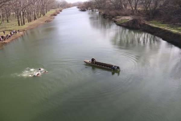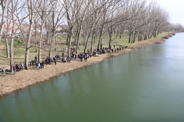 Ακολούθως, και περί ώρα 12η μεσημβρινή, ο Σεβασμιώτατος πλαισιούμενος από τους ιερείς της πόλεως και τον Δήμαρχο Διδυμοτείχου προσήλθε, κατά τό έθος, στη Γέφυρα του Ερυθροποτάμου για τον αγιασμό των υδάτων.