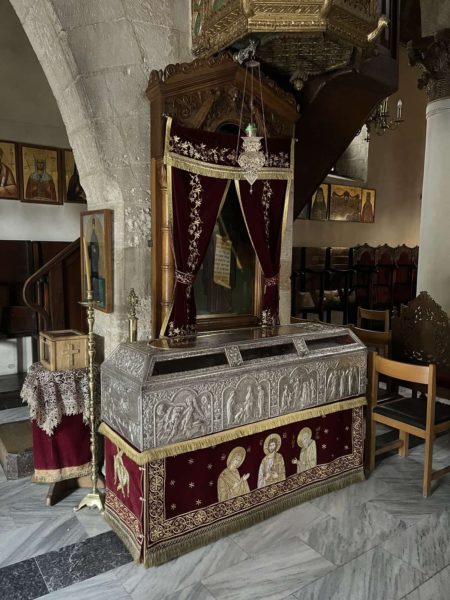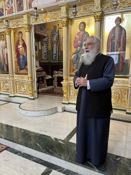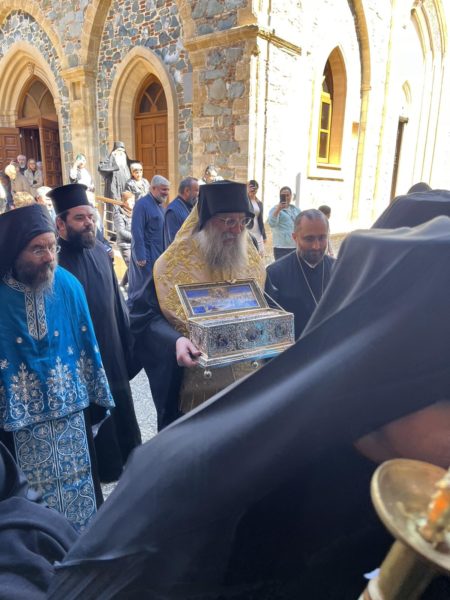 Τους προσκυνητές με πολλή αγάπη υποδέχθηκε και περισσή φροντίδα περιέβαλε εκ προσώπου του Μακαριωτάτου Αρχιεπισκόπου Κύπρου κ.κ. Γεωργίου ο Θεοφιλέστατος Επίσκοπος Μεσαορίας κ. Γρηγόριος, υπεύθυνος του Συνοδικού Γραφείου Θρησκευτικών περιηγήσεων της Εκκλησίας της Κύπρου.