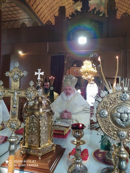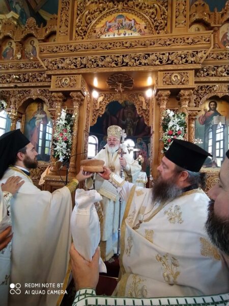 Σήμερα το πρωί ο Σεβασμιώτατος προέστη της Ευχαριστιακής Συνάξεως στον ωσαύτως πανηγυρίζοντα Ιερό Ενοριακό Ναό Προφήτου Ηλιού Σαγήνης Ορεστιάδος, όπου στο τέλος της ακολουθίας τίμησε τον αποχωρούντα Πρωτοψάλτη του Ναού Γεώργιο Παπαδόπουλο, ο οποίος για 46 χρόνια διηκόνησε το ιερό αναλόγιο της Ενορίας αυτής.