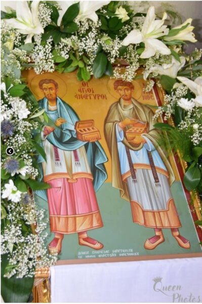 Για το ήθος των Αγίων Αναργύρων και τις αρετές τους ομίλησε ο Αρχιμ. Γρηγόριος Λιόλιος. Ο Σεβασμιώτατος προ του πέρατος της Θείας Λειτουργίας συνεχάρη τους νέους Διοικητές των νοσηλευτικών καθιδρυμάτων επί τη αναλήψει των καθηκόντων τους και τους ευχήθηκε επιτυχία στο έργο τους. Ευχαρίστησε επίσης το ιατρικό, νοσηλευτικό, διοικητικό και βοηθητικό προσωπικό τους για την προσφορά και την διακονία τους. Τέλος, ευχήθηκε ταχεία ανάρρωση σε όσους βρίσκονται στο κρεβάτι του πόνου και καλή υπομονή σε όσους τους συνοδεύουν.