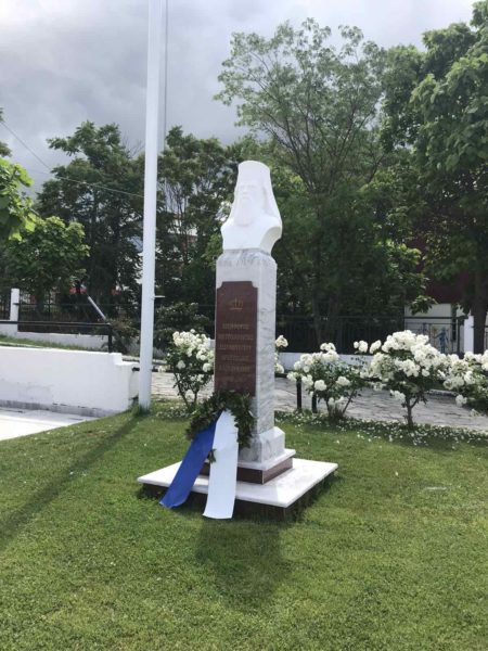 Μετά τη Θεία Λειτουργία, ο οικείος Μητροπολίτης κ. Δαμασκηνός προέστη του Μνημοσύνου και του επιταφίου Τρισαγίου του μακαριστού προκατόχου του κυρού Νικηφόρου και κατέθεσε στέφανο στόν παρακείμενο ανδριάντα του.