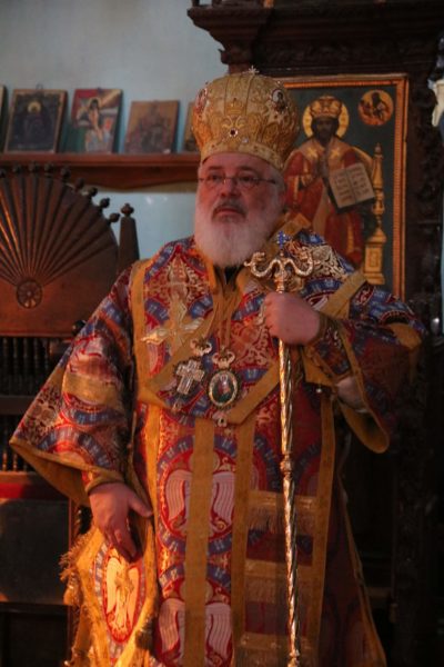 Τον Σεβασμιώτατο στη Θεία Λειτουργία πλαισίωσαν ο Αρχιμανδρίτης Δαμασκηνός, Ηγούμενος της Πατριαρχικής Μονής Αγίου Γεωργίου στο Παλαιό Κάιρο, κληρικοί της επαρχίας του και Σιναΐτες πατέρες.