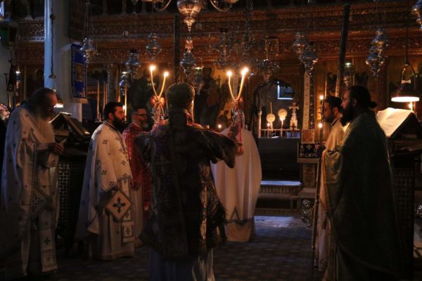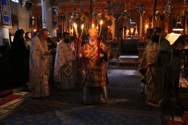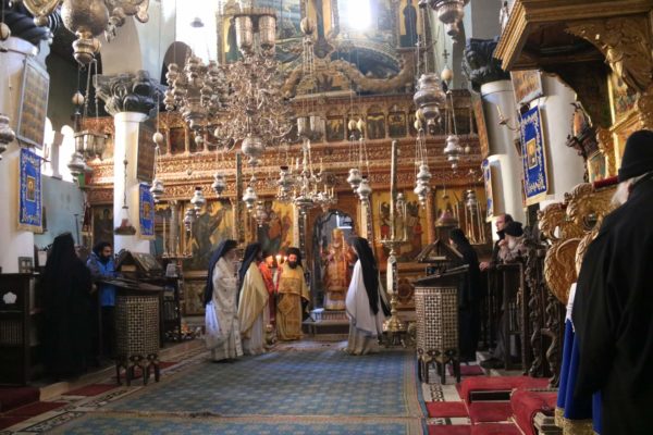 Συγκεκριμένα, ο πρώτος προορισμός του οδοιπορικού ήταν η Ιερά Μονή της Αγίας Αικατερίνης στο Σινά, στο Καθολικό της οποίας ο Σεβασμιώτατος ιερούργησε την Τρίτη, 21 Φεβρουαρίου.