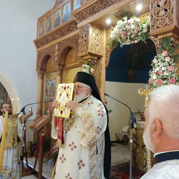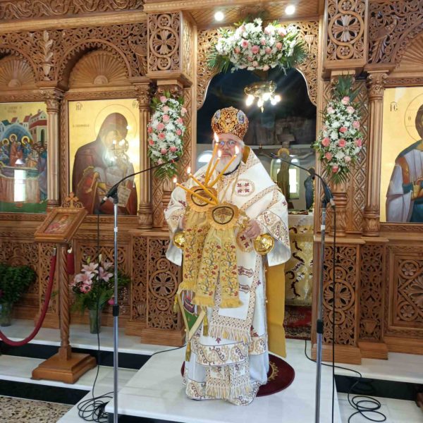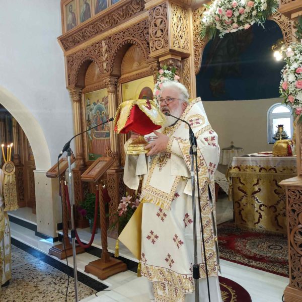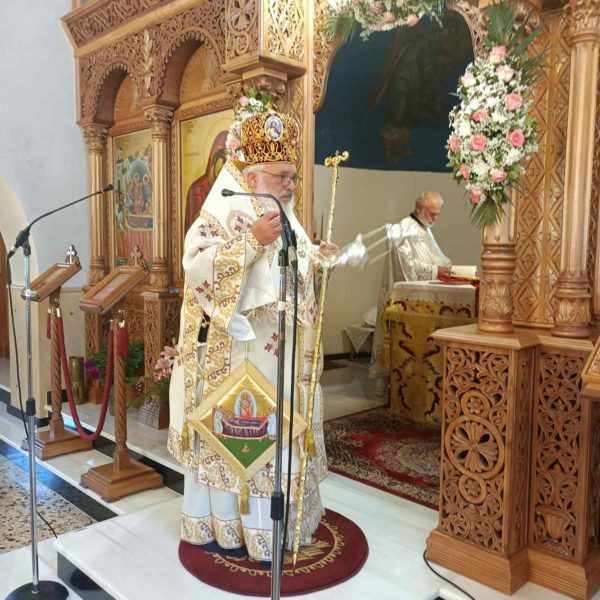Ο Σεβασμιώτατος στην προσλαλιά του μετέφερε πρωτίστως στο χριστεπώνυμο πλήρωμα την συμπάθεια της Μητρός Εκκλησίας και της Α.Θ.Π. του Οικουμενικού Πατριάρχου κ.κ. Βαρθολομαίου, ο οποίος επικοινώνησε μαζί του τηλεφωνικά για να εκδηλώσει την αγωνία του και την συμπαράστασή του. Στη συνέχεια μίλησε επί του υμνογραφικού «τὴν πᾶσαν ἐλπίδα μου εἰς Σὲ ἀνατίθημι…» και επεσήμανε ότι όλα αυτά τα θλιβερά, που συμβαίνουν στις μέρες μας, είναι αποτέλεσμα της παρακοής, του εγωισμού, της απληστίας και της αποστασίας του ανθρώπου από το Θεό.