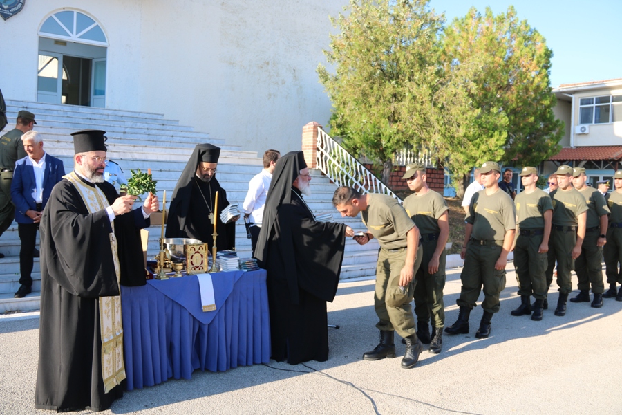 Στο τέλος ο Σεβασμιώτατος διένειμε στους χριστιανούς νέους συνοριοφύλακες την Καινή Διαθήκη σε μετάφραση, που προσέφερε η Βιβλική Εταιρεία, ως πνευματικό εφόδιο στα νέα τους καθήκοντα.
