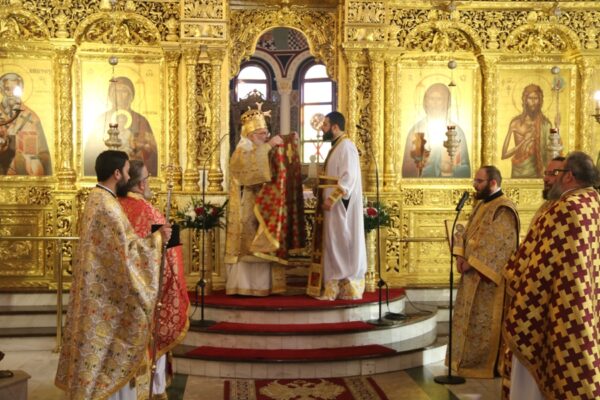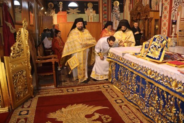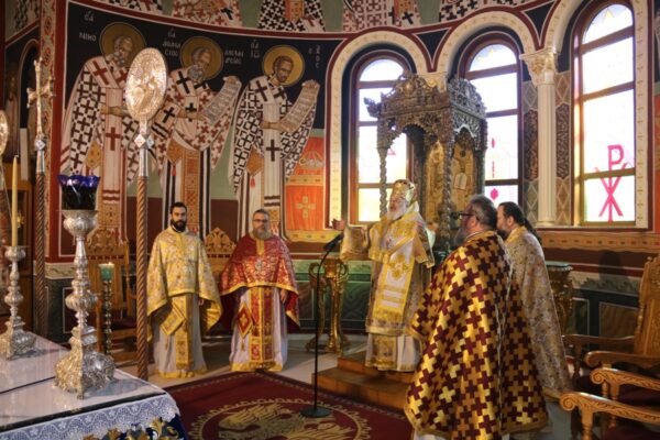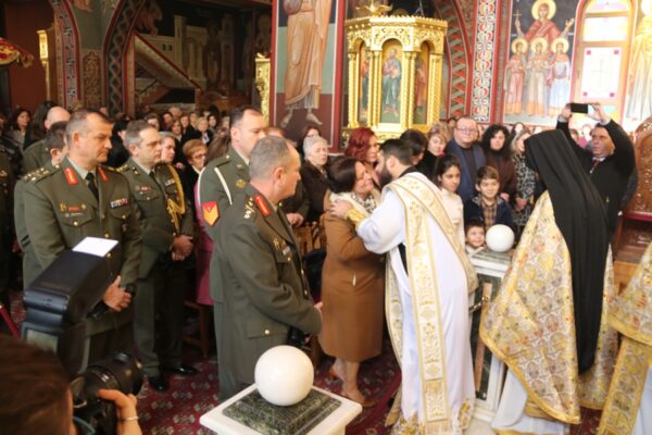 Προ του πέρατος της Θείας Λειτουργίας ο Σεβασμιώτατος με βαθειά συγκίνηση συνεχάρη τον νεωστί χειροτονηθέντα Πρεσβύτερο και τους κατά σάρκα γονείς του Πρωτοπρ. Απόστολο Καλφόπουλο και Πρεσβυτέρα Δέσποινα, που παραδίδουν στην Εκκλησία ένα από τα τρία άρρενα τέκνα τους, και την σύζυγό του νέου Ιερέως Πρεσβυτέρα Ελευθερία, που χωρίς δισταγμούς συνηγόρησε για την χειροτονία του.