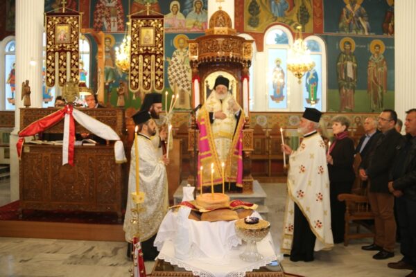 Απευθυνόμενος ο Σεβασμιώτατος στους επισήμους και στο πολυπληθές εκκλησίασμα ευχήθηκε «το ανέσπερο φως της Αναστάσεως, η ανέκφραστος χαρά και ευφροσύνη και η πάντα νουν υπερέχουσα ειρήνη του Αναστάντος, ο οποίος κατέλυσε την φθορά, το θάνατο και το σκοτάδι, να φωτίζουν τις καρδιές όλου του κόσμου εις απόλαυσιν των ανεκλαλήτων δωρεών του Φιλανθρώπου Σωτήρος ημών εις έτη πλείστα υγιεινά, πανευφρόσυνα και πασχαλίως κατηγλαϊσμένα».