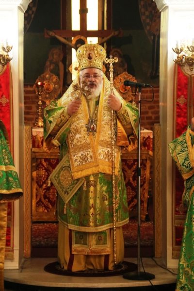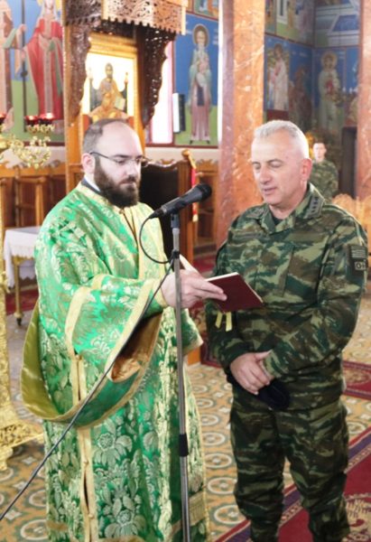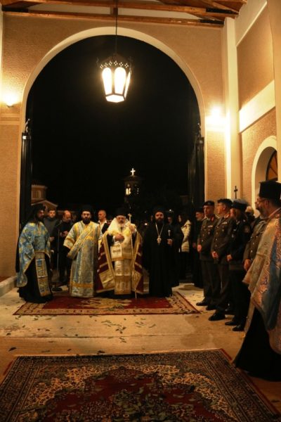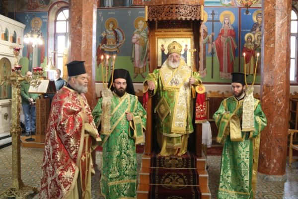 Το πρωί της αυτής ημέρας ο Σεβασμιώτατος, παρουσία του Διοικητού του 21ου Συντάγματος Συνταγματάρχου Βαρδή Χαρκιανάκη, λειτούργησε στον Ιερό Ενοριακό Ναό Αγίου Γεωργίου Πλάτης, του τέως Δήμου Τριγώνου, όπου ερμηνεύοντας την ευαγγελική περικοπή του «Άφρονος πλουσίου», μεταξύ άλλων, τόνισε: «Τήν ἐξαιρετικά ἀφυπνιστική παραβολή τοῦ ἄφρονος πλουσίου ἀκούσαμε σήμερα ἀπό τό θεανδρικό στόμα τοῦ Λυτρωτῆ Ἰησοῦ, άγαπητοί… Ὁ Κύριος δέν κατακρίνει τόν πλοῦτο, ὅπως πολλές φορές λανθασμένα νομίζουμε. Ὁ Κύριος καλεῖ τόν ἄνθρωπο νά γίνει πολύ πλούσιος ἀλλά ὄχι ὑλικά. Νά μαζέψει ἀγαθά ἀλλά ὄχι φθαρτά καί πρόσκαιρα. Καλεῖ τόν ἄνθρωπο νά γίνει πλούσιος «εἰς Θεόν πλουτῶν». Ὁ Ἰησοῦς καλεῖ τούς ἀνθρώπους νά ἀποκτήσουν μία εὐλογημένη μέριμνα· νά ἐγκαταλείψουν αὐτή τή δολοφονική μέριμνα γιά τά ὑλικά πράγματα, πού τούς σκοτώνει καί τούς ἐξευτελίζει. Στή θέση της νά βάλουν τήν ὑψοποιό μέριμνα γιά τόν πνευματικό πλοῦτο, πού ἀναζωογονεῖ, ἰσορροπεῖ καί ἀναπαύει. Ἡ μέριμνα γιά τόν κατά Θεόν πλοῦτο ἔχει τρία στάδια. Πρῶτον, ξεκινάει ἀπό τή μνήμη τοῦ θανάτου. Δεύτερον, συνεχίζεται μέ τήν ἐργασία τῆς ἀρετῆς. Τρίτον, ὁλοκληρώνεται μέ τήν πορεία πρός τή θεογνωσία…