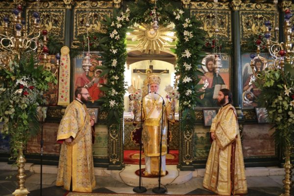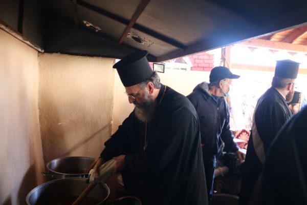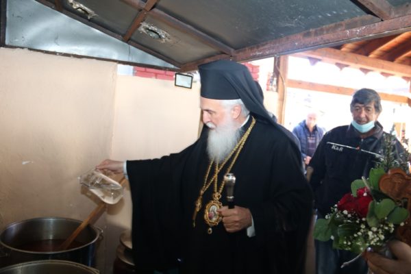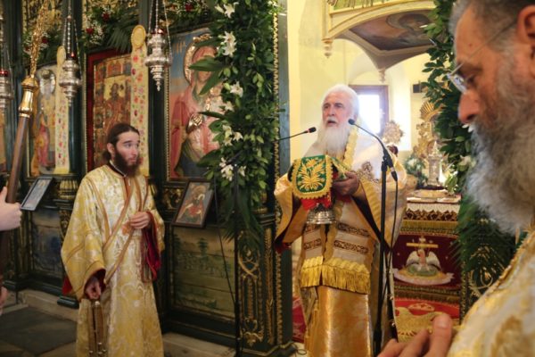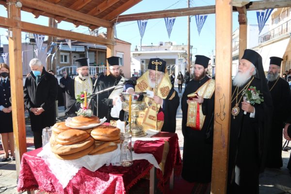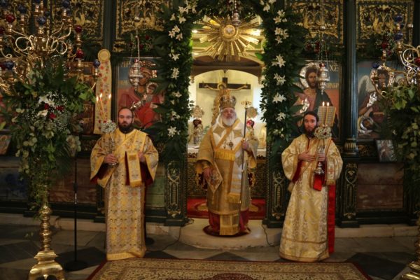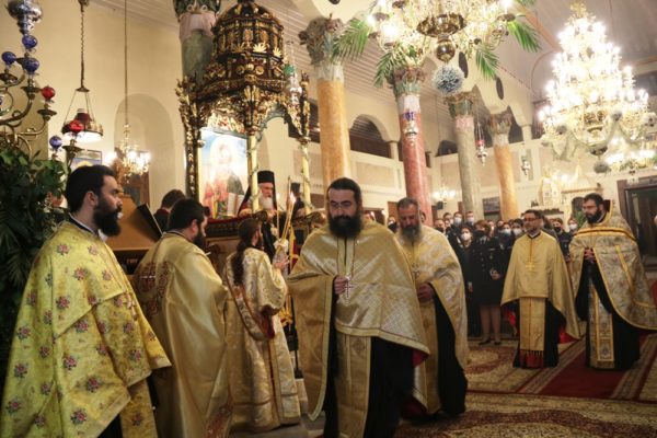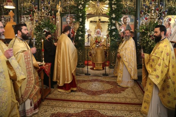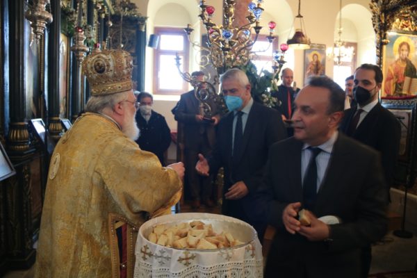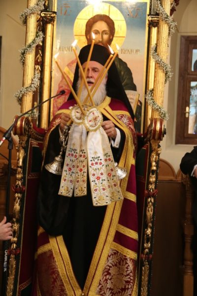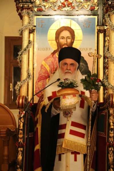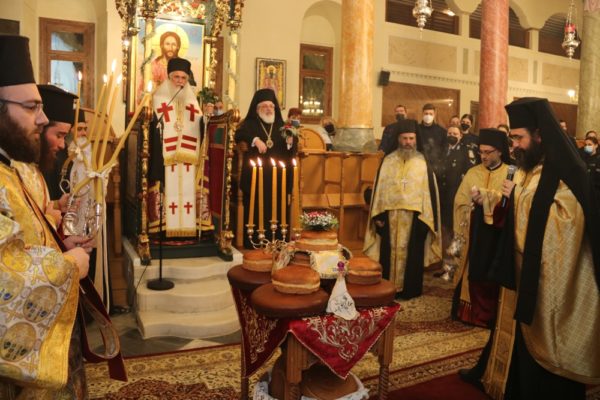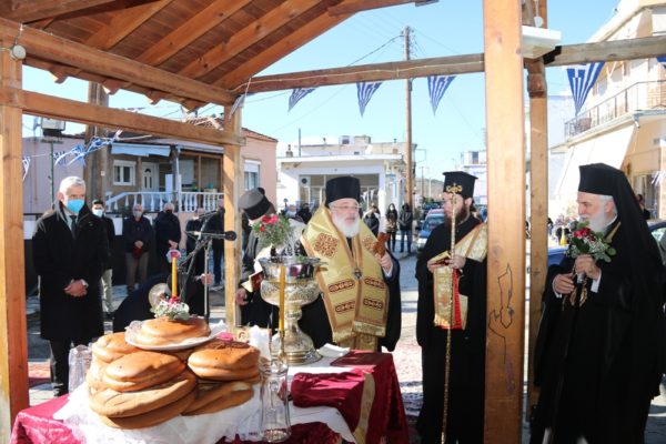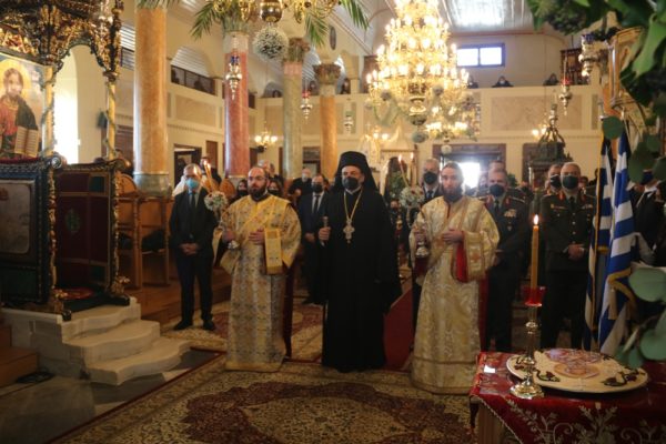 Ο Σεβασμιώτατος κ. Δαμασκηνός ερμηνεύοντας τι σημαίνει γιορτή χριστιανική δανείσθηκε τον σχετικό λόγο του Ιερού Χρυσοστόμου «αὕτη γάρ ἀληθής ἑορτή· ἔνθα ψυχῶν σωτηρία· ἔνθα εἰρήνη καί ὁμόνοια καί γαλήνη· ἔνθα φαντασία μέν πᾶσα βιωτική καί κραυγή καί θόρυβος ἀπελήλαται, ἠρεμία δέ πᾶσα καί χαρά καί εἰρήνη καί πραότης καί τα μύρια ἀγαθά ἀντ’ ἐκείνων πολιτεύται…» και επεσήμανε ότι η χριστιανική γιορτή είναι ευκαιρία «κοινωνίας»· κοινωνίας με τον Θεό τον Οποίο ευχαριστούμε στη θεία λατρεία δοξολογικά· κοινωνίας με τον τιμώμενο άγιο, από τον οποίο αρρυόμεθα παραδείγματα αρετής προς μίμηση· κοινωνίας μεταξύ μας, που τόσο την στερηθήκαμε τους μήνες της πανδημίας, και ευχήθηκε ειρήνη, ομόνοια, χαρά, γαλήνη, πραότητα, ηρεμία και όλα αγαθά του Θεού.