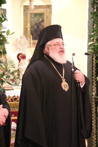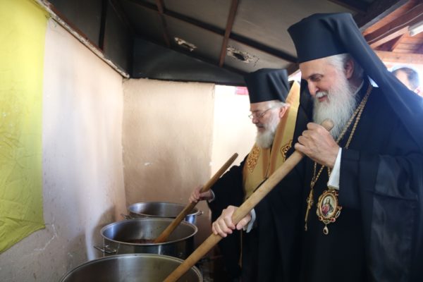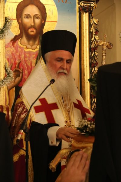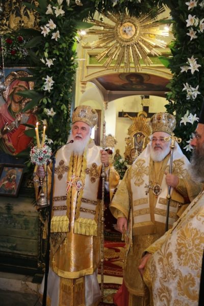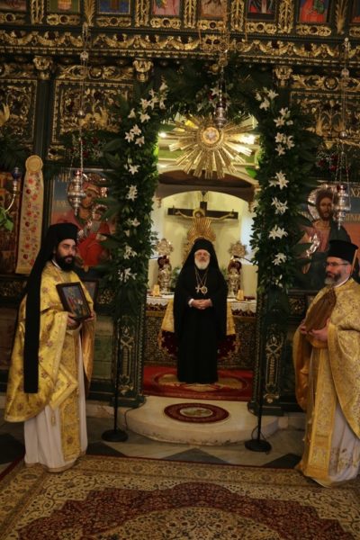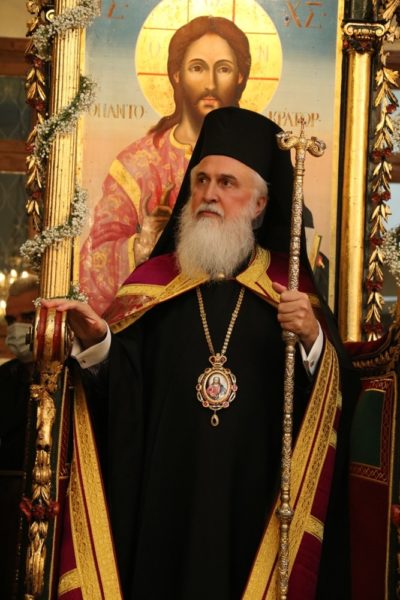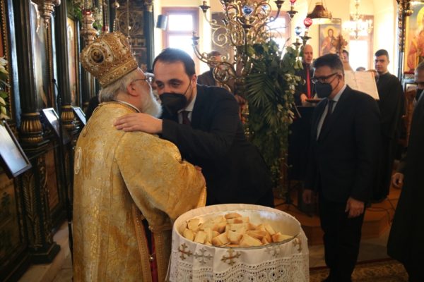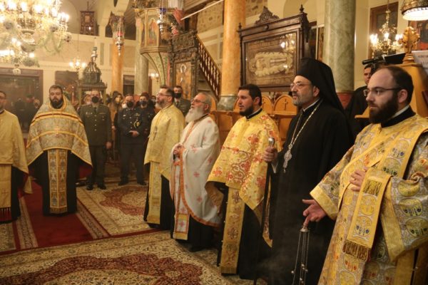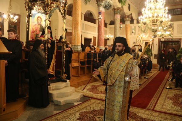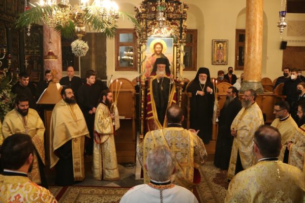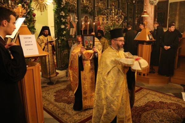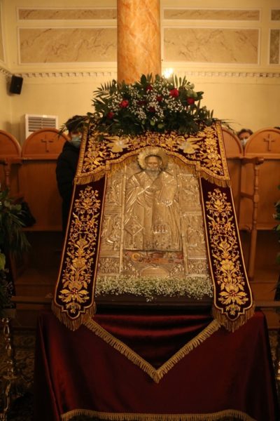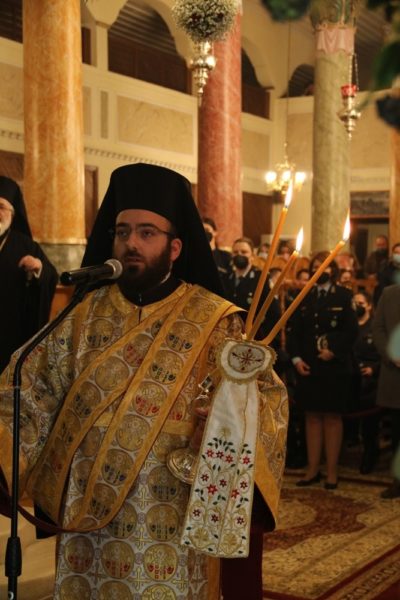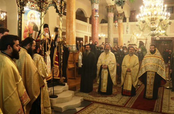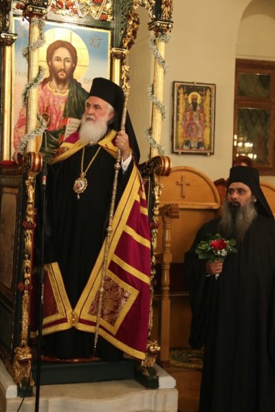 Ο Σεβασμιώτατος κ. Δαμασκηνός ερμηνεύοντας τι σημαίνει γιορτή χριστιανική δανείσθηκε τον σχετικό λόγο του Ιερού Χρυσοστόμου «αὕτη γάρ ἀληθής ἑορτή· ἔνθα ψυχῶν σωτηρία· ἔνθα εἰρήνη καί ὁμόνοια καί γαλήνη· ἔνθα φαντασία μέν πᾶσα βιωτική καί κραυγή καί θόρυβος ἀπελήλαται, ἠρεμία δέ πᾶσα καί χαρά καί εἰρήνη καί πραότης καί τα μύρια ἀγαθά ἀντ’ ἐκείνων πολιτεύται…» και επεσήμανε ότι η χριστιανική γιορτή είναι ευκαιρία «κοινωνίας»· κοινωνίας με τον Θεό τον Οποίο ευχαριστούμε στη θεία λατρεία δοξολογικά· κοινωνίας με τον τιμώμενο άγιο, από τον οποίο αρρυόμεθα παραδείγματα αρετής προς μίμηση· κοινωνίας μεταξύ μας, που τόσο την στερηθήκαμε τους μήνες της πανδημίας, και ευχήθηκε ειρήνη, ομόνοια, χαρά, γαλήνη, πραότητα, ηρεμία και όλα αγαθά του Θεού.