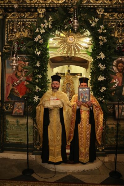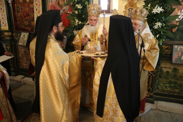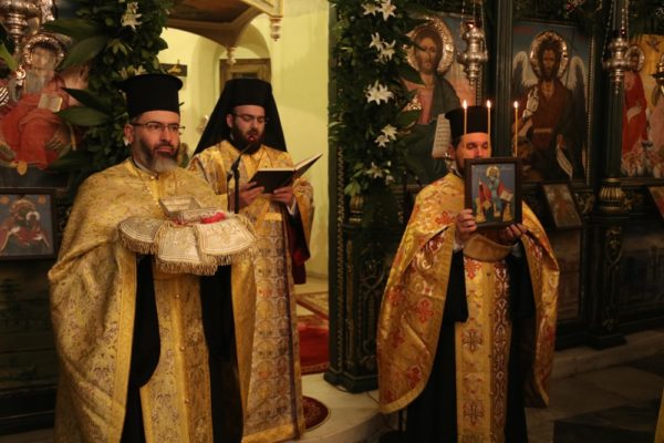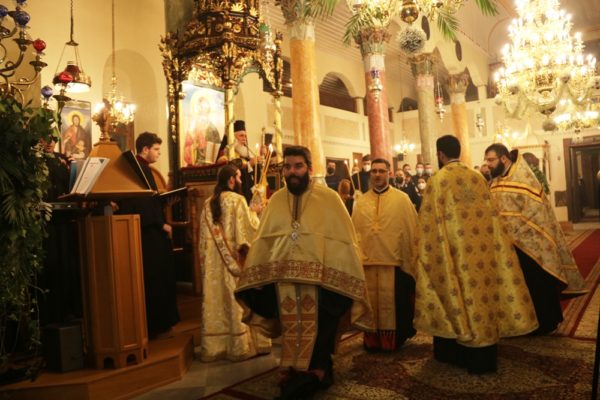 Το πρωί της επομένης της Ευχαριστιακής Συνάξεως προέστη ο φιλοξενούμενος Σεβ. Μητροπολίτης Λήμνου κ. Ιερόθεος, συλλειτουργούντος του οικείου Μητροπολίτου κ. Δαμασκηνού, και επίκαιρα μίλησε «εν πληθούση εκκλησία» ο Αρχιμ. Ιερώνυμος Σχίζας, Γενικός Αρχιερατικός Επίτροπος της Ιεράς Μητροπόλεως Λήμνου.