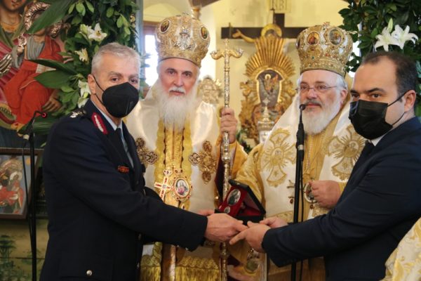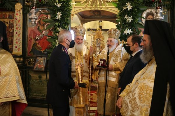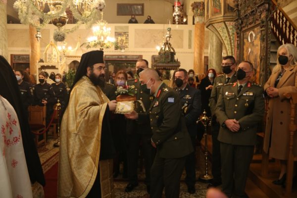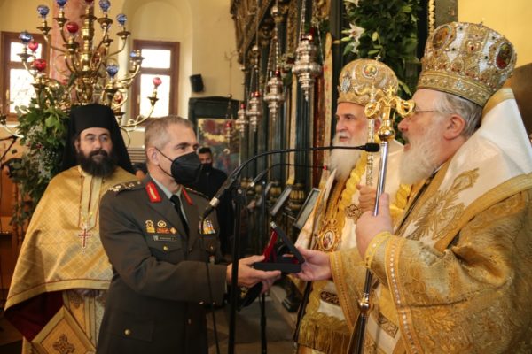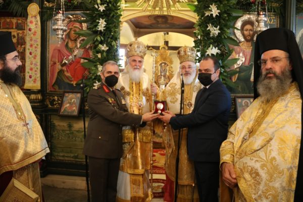 Τέλος, ο Σεβασμιώτατος κ. Δαμασκηνός τίμησε με την ύψιστη τιμητική διάκριση της Ιεράς Μητροπόλεως Διδυμοτείχου, Ορεστιάδος και Σουφλίου, αυτήν του Αγίου Βασιλέως Ιωάννου Βατάτζη του Ελεήμονος, τον Ελληνικό Στρατό και την Ελληνική Αστυνομία εν τω προσώπω του Διοικητού του Δ΄ Σώματος Στρατού Αντιστρατήγου Αγγέλου Χουδελούδη και του Γενικού Περιφερειακού Αστυνομικού Διευθυντού Ανατ. Μακεδονίας – Θράκης Υποστρατήγου Πασχάλη Συριτούδη, αντιστοίχως, καταγομένων αμφοτέρων από τον ακριτικό Έβρο, του πρώτου από τους Μεταξάδες και του δεύτερου από την Λεπτή Ορεστιάδος. Και διευκρίνισε, εν συνεχεία, ότι ο Ελληνικός Στρατός και η Ελληνική Αστυνομία, έχοντας τα συγκεκριμένα πρόσωπα ηγήτορες, από του παρελθόντος μηνός Φεβρουαρίου 2020 έως και της σήμερον προσφέρουν πολύτιμες υπηρεσίες στους ακρίτες διασφαλίζοντας την ακεραιότητα της Πατρίδας μας, την ησυχία, την γαλήνη και την ποιότητα ζωής.