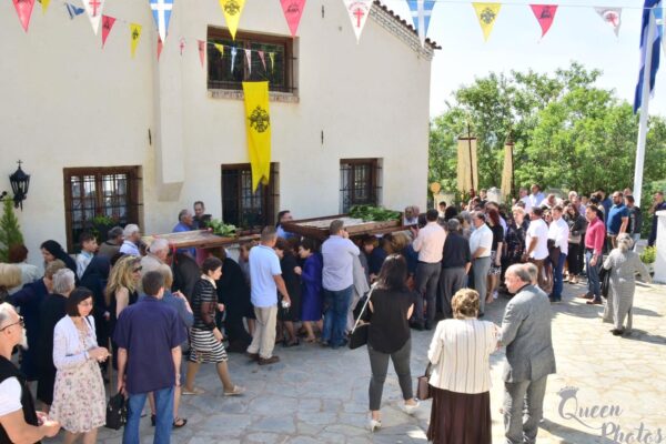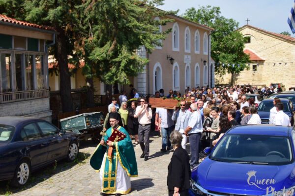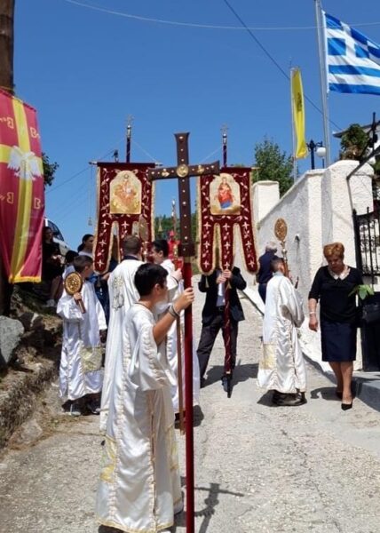 Ακολούθησε ο Εσπερινός της Γονυκλισίας και η πάνδημη λιτάνευση των ιερών εικόνων του Χριστού και της Παναγίας στο Μητροπολιτικό Ναό του Αγίου Αθανασίου, όπου εναπετέθηκαν προς προσκύνηση. Την επόμενη, Δευτέρα του Αγίου Πνεύματος, στον Ιερό Μητροπολιτικό Ναό Αγίου Αθανασίου της Ευχαριστιακή Συνάξεως προέστη ο Σεβασμιώτατος Ποιμενάρχης μας και μετά το πέρας της Θεία Λειτουργίας και πάλι οι ιερές εικόνες μεταφέρθησαν λιτανευτικώς στο Ναό του Σωτήρος Χριστού με τη συνοδεία πλήθους πιστών, που όπως και την προτεραία, κρατούσαν σύμφωνα με την παράδοση κλαριά καρυδιάς.
