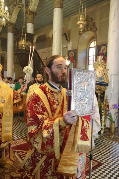 Της Ευχαριστιακής Συνάξεως προέστη ο οικείος Μητροπολίτης Διδυμοτείχου, Ορεστιάδος και Σουφλίου κ. Δαμασκηνός και αντί κοινωνικού ανεγνώσθη η ʺΠατριαρχική Απόδειξις επί τη εορτή του Αγίου Πάσχαʺ. Στή συνέχεια ο Σεβασμιώτατος ευλόγησε τα πασχαλινά αυγά και λιτανεύθηκε η ιερά εικόνα του Αγίου πλαισιουμένη από στρατιωτικό άγημα και τη Δημοτική Φιλαρμονική.
