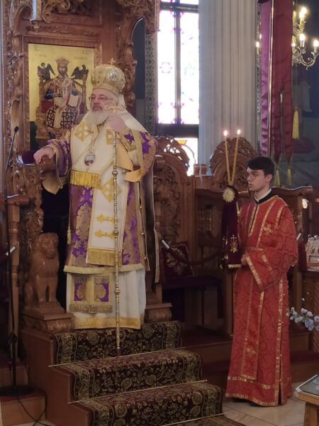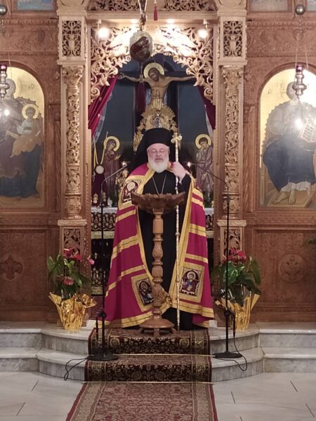 Ομοίως ο Σεβασμιώτατος την παρελθούσα Παρασκευή, 20 του μηνός Μαρτίου 2020, το εσπέρας, προέστη της ακολουθίας των Χαιρετισμών στον αυτό Ιερό Ναό, απ’ όπου αναμεταδόθηκε και πάλι ραδιοφωνικά και τηλεοπτικά η ιερά ακολουθία.