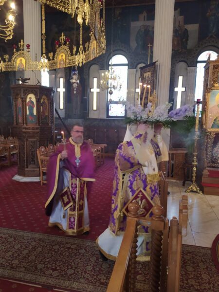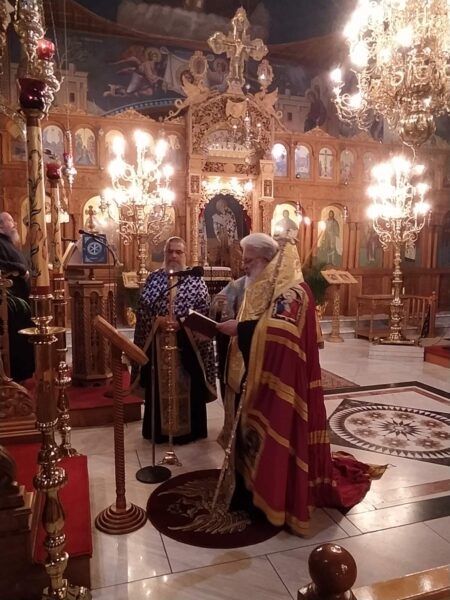 Ομοίως ο Σεβασμιώτατος την παρελθούσα Παρασκευή, 20 του μηνός Μαρτίου 2020, το εσπέρας, προέστη της ακολουθίας των Χαιρετισμών στον αυτό Ιερό Ναό, απ’ όπου αναμεταδόθηκε και πάλι ραδιοφωνικά και τηλεοπτικά η ιερά ακολουθία.