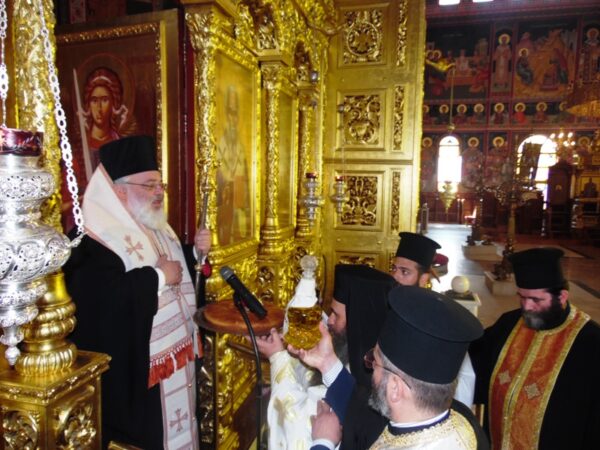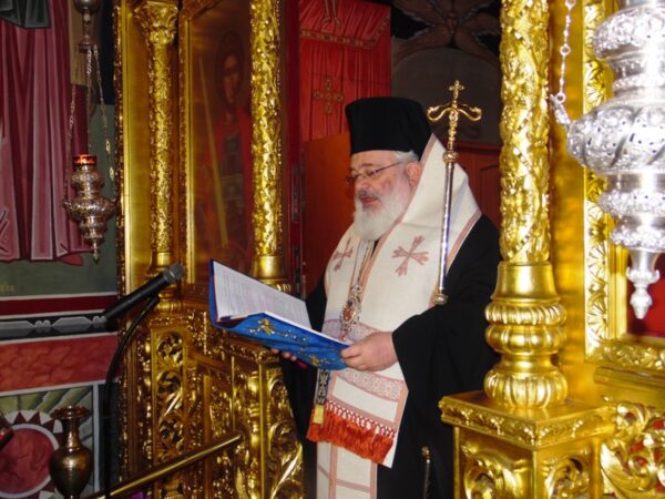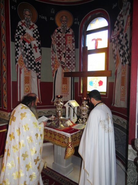 Του ιερού Μνημοσύνου προηγήθηκε η Θεία Λειτουργία στο επ’ ονόματι του Αγίου Νικηφόρου τιμώμενο Ιερό Παρεκκλήσιο του Καθεδρικού Ναού (στο βόρειο κλίτος), της οποίας προέστη ο εκ των πνευματικών τέκνων του μακαριστού, Αρχιμανδρίτης Νικηφόρος Ζαμπουνίδης. Ακολούθησε Τρισάγιο επί του τάφου, ο οποίος βρίσκεται μπροστά από τον Ιερό Καθεδρικό Ναό.